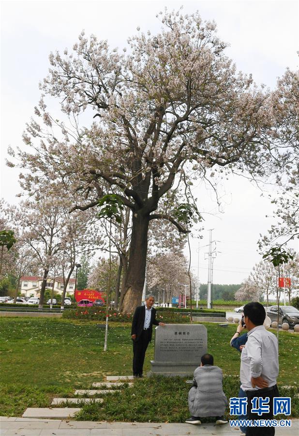 4月24日,游人在焦裕祿當(dāng)年栽種的泡桐前拍照留念。新華社記者 顧立林 攝