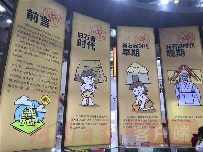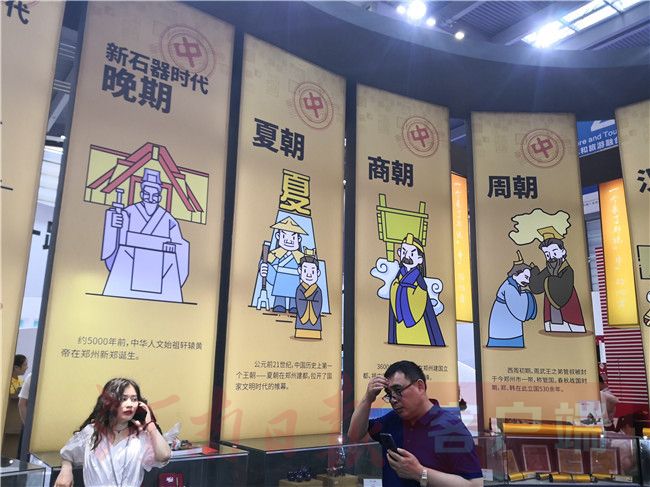 舊石器時(shí)代,10萬年前,鄭州地區(qū)出現(xiàn)眾多人類活動(dòng)足跡……5月16日上午,鄭州主題展區(qū)亮相深圳會(huì)展中心2號館,整個(gè)背景墻以鄭州不同時(shí)期的歷史大事記為線索,從舊石器時(shí)代講到現(xiàn)在,以漫畫形式呈現(xiàn),全面展示鄭州3600年不斷線的城市文脈,耳目一新的表達(dá)讓觀眾紛紛駐足欣賞,紛紛感嘆“這不僅讓我們重溫了歷史,人文厚重的鄭州發(fā)展到現(xiàn)在的時(shí)尚都市,果然中”。