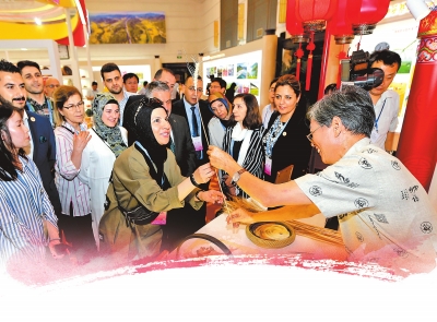6月27日,在“中國共產(chǎn)黨的故事”專題宣介會主題展上,麥秸稈作畫吸引了外國嘉賓的眼球。鄧放 王錚攝
