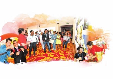“這個作品是為這次活動專門設(shè)計的,包含了天安門、黨旗等主題元素,以及牡丹花、年畫娃娃等傳統(tǒng)元素。”暢楊楊展開一幅1.5米寬的剪紙作品介紹。在去年外交部舉辦的河南全球推介活動中,他的剪紙就大受歡迎。“非常好,太棒了!”斯里蘭卡國會議員馬迪塔拿到簽著自己名字的剪紙后滿臉笑容。他告訴記者,自己對中國文化向往已久,這次來到中華文明的發(fā)祥地河南,可以說完成了多年來的一個心愿。