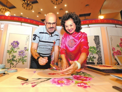 外賓在學(xué)畫牡丹畫。王錚 鄧放攝
