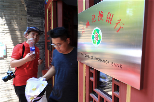 ▲遍布正定縣各景區(qū)及文物游覽點(diǎn)的“垃圾兌換銀行”,可以用垃圾兌換紀(jì)念品或禮品,踐行綠色發(fā)展理念。-河寧 攝