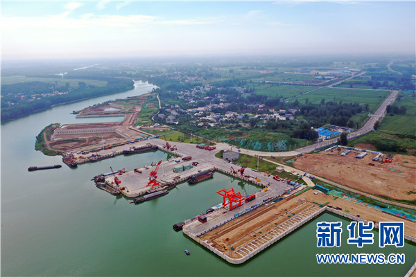 這是河南周口中心港碼頭(7月31日無人機(jī)拍攝)。新華社記者 李嘉南 攝