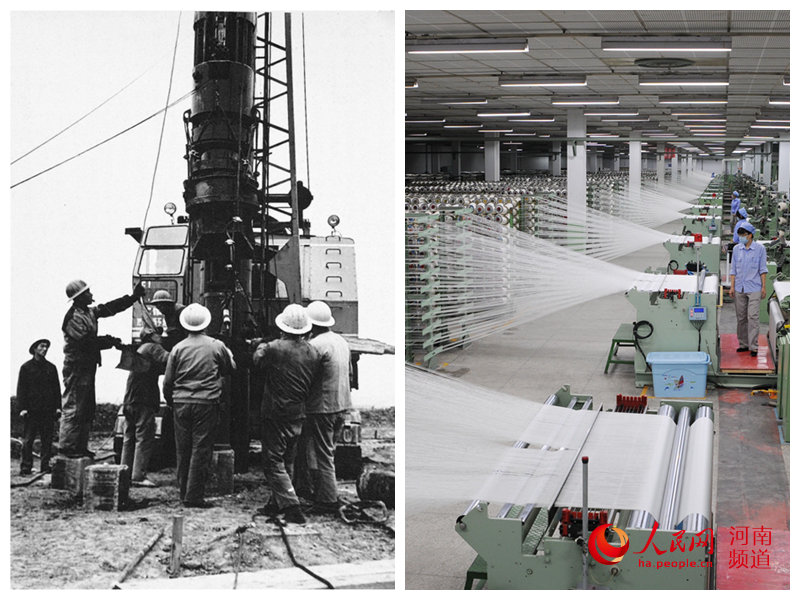 原平頂山錦綸簾子布廠建成初期與現代化車間對比(資料圖)