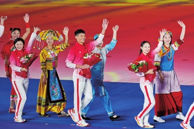 第十一屆全國民族運動會閉幕式演出本版圖片均據(jù)新華社