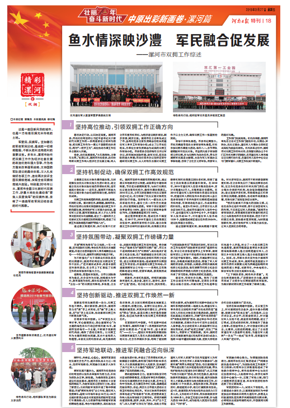 ??點(diǎn)擊查看鏈接:魚水情深映沙澧 軍民融合促發(fā)展——漯河市雙擁工作綜述