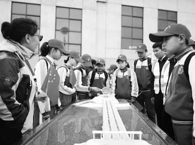 鶴壁管理處開放日,工作人員向中學(xué)生講解渡槽模型和節(jié)制閘工作原理南水北調(diào)中線工程建管局河南分局供圖