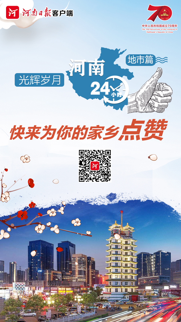慶祝新中國成立70周年,講好出彩河南故事,河南省委網(wǎng)信辦聯(lián)合河南日?qǐng)?bào)新媒體部開展“光輝歲月·河南24小時(shí)(地市篇)”網(wǎng)絡(luò)主題互動(dòng)活動(dòng),通過制作系列微視頻、全省18地市聯(lián)動(dòng)的方式,分階段、立體化、全景式展現(xiàn)河南各地70年來發(fā)生的巨大變化、取得的偉大成就。