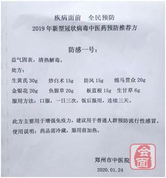 1月27日,記者李靜從鄭州市衛(wèi)健委獲悉,這幾日鄭州市中醫(yī)院的草藥房收到了十來張抄自網(wǎng)絡(luò)的預(yù)防藥方,市民們紛紛要求按方抓藥。為了能給市民們擬出了一張溫和、適宜的預(yù)防茶飲方,中醫(yī)院的中藥專家們經(jīng)過探討,在經(jīng)典方的基礎(chǔ)上加減,擬定了《防感一號》。
