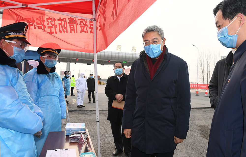 2月1日,省長(zhǎng)尹弘到周口市調(diào)研檢查新型冠狀病毒感染的肺炎疫情防控工作。尹弘一行深入高速出入口、村級(jí)卡口檢查點(diǎn),察看詢問基層疫情防控日常工作,慰問參與抗擊疫情的基層干部群眾,叮囑加強(qiáng)農(nóng)村和城鄉(xiāng)社區(qū)防控,抓好基層疫情防控精細(xì)化管理。