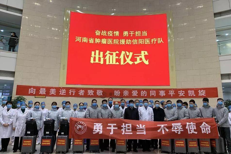 3日上午9點,河南省腫瘤醫(yī)院門診大廳氣氛別樣不同,醫(yī)生護士自動匯聚在這里為同事“壯行”。這支11人的隊伍是我省新型冠狀病毒感染肺炎疫情防控第一支省內(nèi)援助醫(yī)療隊,于今天奔赴信陽。