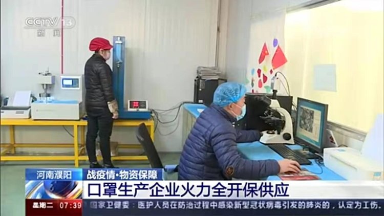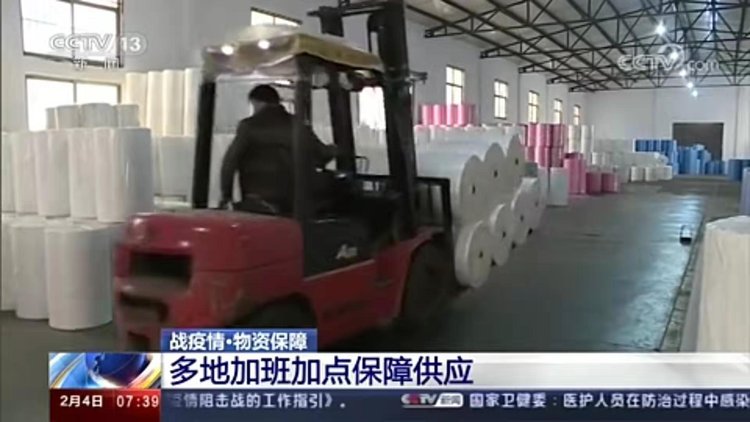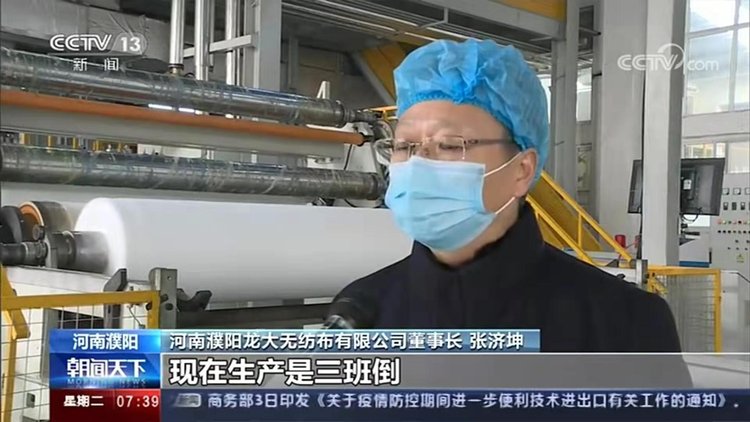 疫情發(fā)生后,河南濮陽龍大無紡布有限公司加大生產(chǎn)確保供應(yīng),這家公司主要生產(chǎn)無紡布,可用于生產(chǎn)口罩、醫(yī)用防護(hù)服和醫(yī)用床單,春節(jié)期間,該公司就做出全員放棄休假的決定,開始滿負(fù)荷生產(chǎn)。