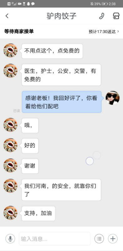 一警嫂王晉在外賣平臺鎖定商家,想要為在一線執(zhí)勤的民警丈夫及同事們送湯圓。當(dāng)?shù)弥獪珗A是送民警的,商家表示:“湯圓下單1分錢一份,醫(yī)生、護士、公安、交警免費,我們河南的安全,就靠你們了,你們也要自己照顧好自己。”