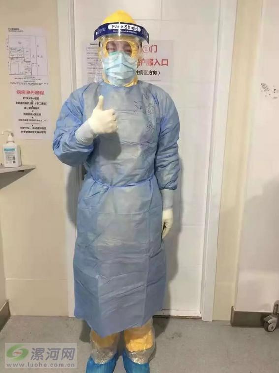 14:20,到達(dá)華中科技大學(xué)同濟(jì)醫(yī)院。直接刷門禁卡走醫(yī)務(wù)人員專用通道,換上洗手衣,然后開始武裝,感控老師很認(rèn)真地把我的頭發(fā)又梳了梳,盤的發(fā)髻不能太高,太高的話帽子會包不嚴(yán)下面的頭發(fā),太低的話前面的額頭包不住。然后開始從上到下一層一層的穿。