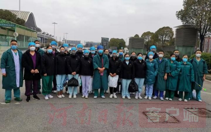 8時10分,在武漢市青山區(qū)一家賓館一樓大廳門口,河南省第五批支援湖北醫(yī)療隊的300名醫(yī)護人員聚集在門口,歡迎首批25名醫(yī)護人員。