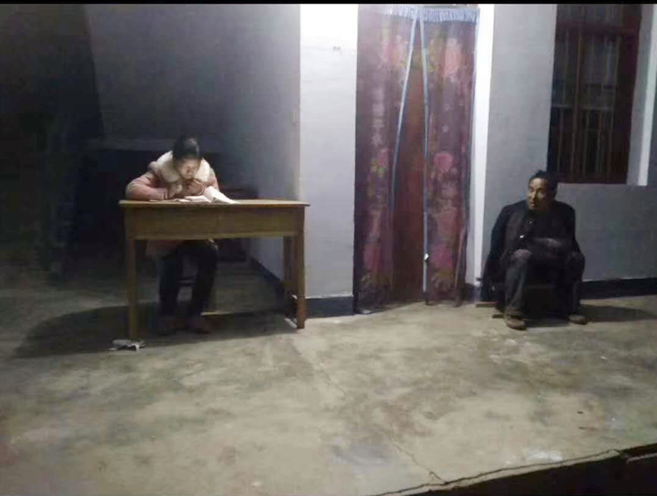 照片里,一位穿粉色衣服的女孩端坐在燈光下認(rèn)真學(xué)習(xí),父親則靜靜坐在一旁的小凳上陪著她。這不是她的家,而是村部的院子。這個女孩,正是小翠珠。翠珠的家距離村部200多米,因為家里不能上網(wǎng),所以就到村部院子“借網(wǎng)”學(xué)習(xí)。而她的父親,就在旁邊守候著。