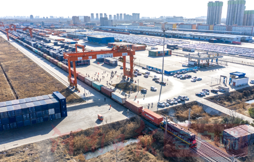 2月16日上午,在中鐵聯(lián)集鄭州中心站,中歐班列(鄭州)春節(jié)后第一趟出口中亞班列發(fā)車(chē)。王錚 攝