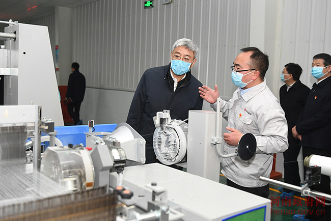 2月21日,省長尹弘深入安陽市安鋼集團、林州致遠電子科技、光遠新材料等企業(yè)調研指導疫情防控和復工復產(chǎn)工作。(文/李鵬 圖/杜小偉)