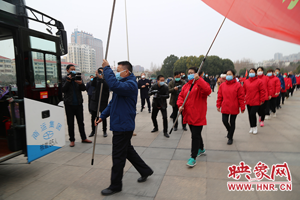 作為河南省第十一批支援湖北醫(yī)療隊(duì),來自市第一人民醫(yī)院、市中醫(yī)院的87名醫(yī)護(hù)人員組成的商丘戰(zhàn)疫情援鄂醫(yī)療隊(duì),即刻出征馳援湖北。大巴車和保障車組成的車隊(duì)緩緩駛出市行政中心。參加儀式的市領(lǐng)導(dǎo)和有關(guān)部門負(fù)責(zé)同志,揮手為他們壯行。