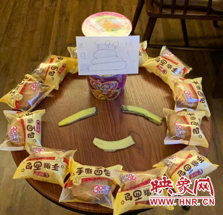 轉(zhuǎn)眼間就到了2月15日,丁陽陽的26歲生日,但她忙的早已忘記。這個生日沒有家人的陪伴,也沒有平日里的大餐,但一起出征的隊員們卻在“疫”線忙碌的間隙,給了她準(zhǔn)備了一份“驚喜”。隊友們用僅有的面包和泡面做成了“雙層蛋糕”,大家用這份“花樣蛋糕”為她慶生。
