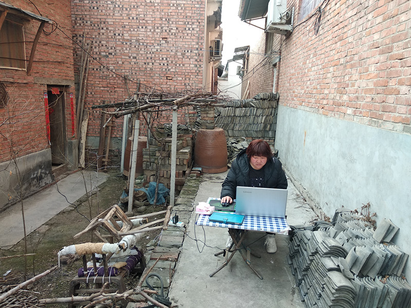 思來(lái)想去,梁葉決定在房前屋后找一處網(wǎng)絡(luò)信號(hào)比較好的地方上課。一張小方桌、一把小板凳、一本教材、一個(gè)筆記本電腦,再加上“蹭”來(lái)的網(wǎng)絡(luò),“臨時(shí)課堂”就在后院的一塊空地上安置了下來(lái)。