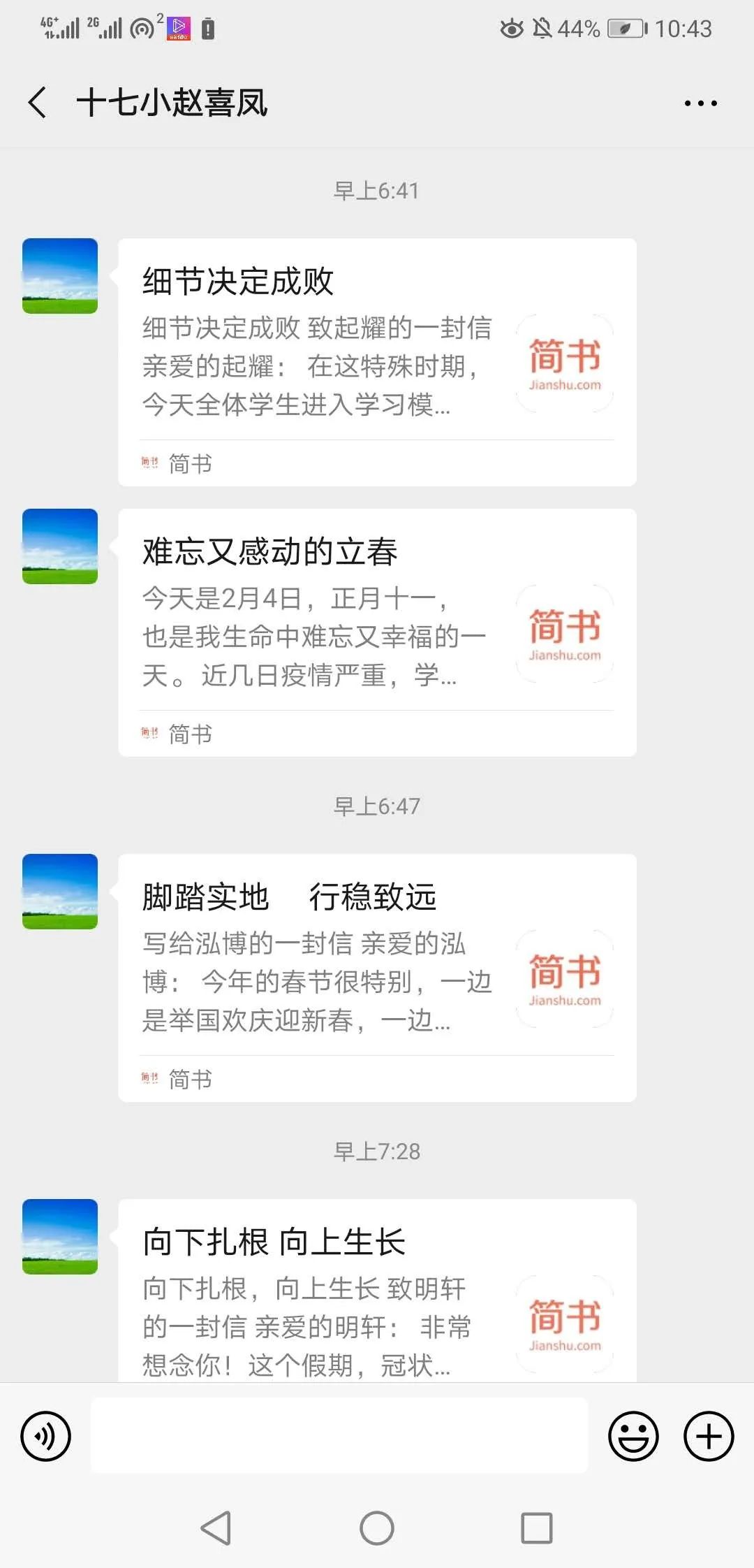 趙喜風(fēng)坦言,她有時也有中途放棄的想法,但看到家長們、孩子們收到她的信后那種激動、感激的回復(fù),她就又有了繼續(xù)寫下去的動力。她說:“寫一封信對于我來說耗費了一天的時間,先手寫后敲到電腦上,再編輯到“簡書”上。但對于一個孩子來說,也許一輩子因此而改變,這就值了!孩子們都在期盼著這封信,我不能停下!”