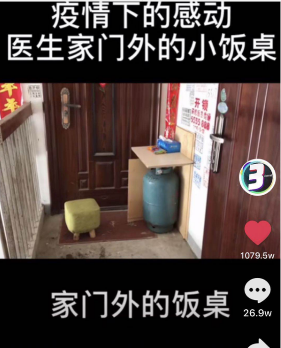 網友感念擺放在家門外的小飯桌,是醫(yī)生杜享在生死疫情面前對職業(yè)的堅定和操守以及對家人的摯愛和不忍;而依偎門邊、集淚目婆娑萬般鐘愛柔情的妻子,則是對出征丈夫的憐愛、企盼和祝愿。