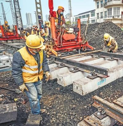 4月2日,中國鐵路鄭州局集團有限公司鄭州橋工段人員,成功地對隴海線圃田西站“服役”到期的46號、68號道岔實施更換。截至當(dāng)天,該段已完成隴海線中牟站等5個車站23組道岔的更新任務(wù)。李中華攝