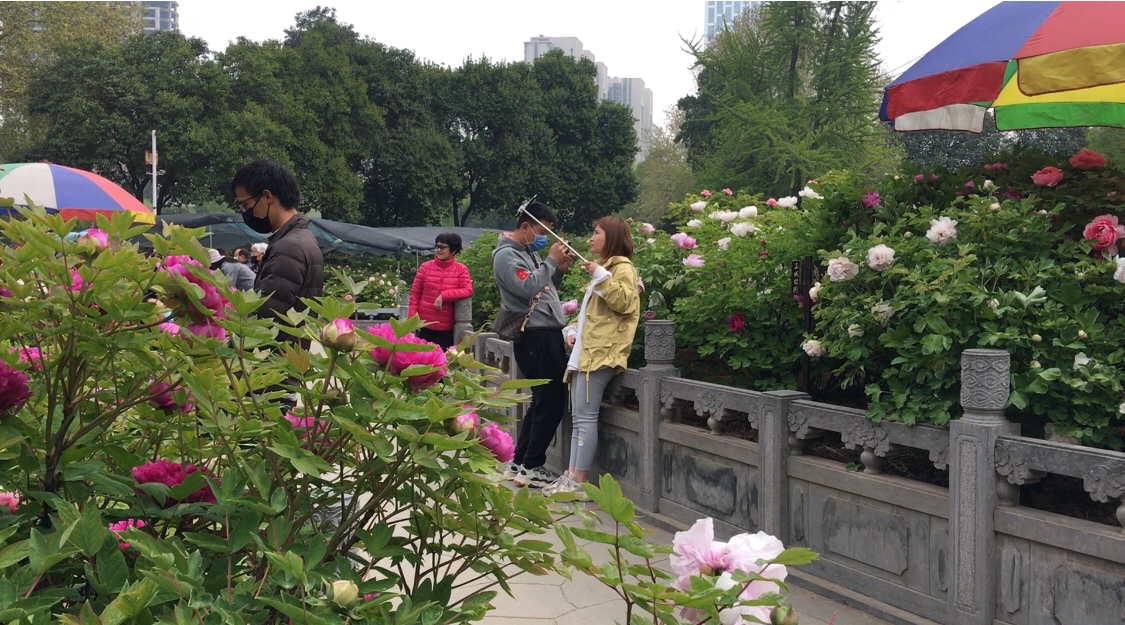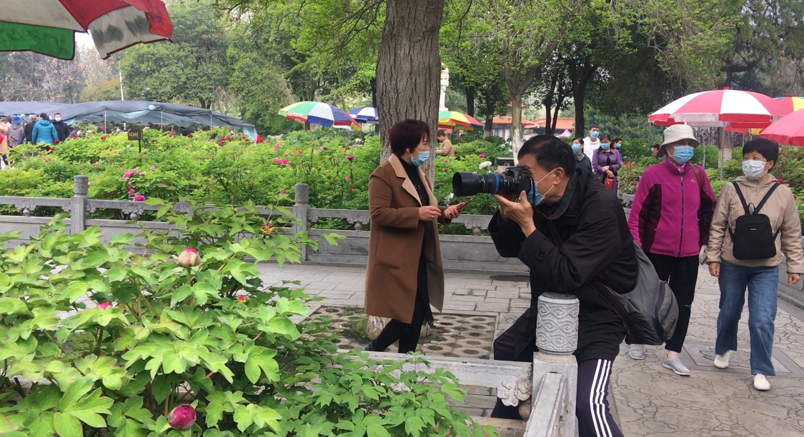 該工作人員告訴記者,除在門口提前做好疏導,公園內(nèi)也在循環(huán)播放防疫信息,并有專業(yè)人員定時定點對道路、長椅等公共區(qū)域進行消毒。今年小長假期間,隋唐遺址公園每日入園游客在16000人左右,雖然相比往年游客數(shù)量有了部分下降,但是游客參觀、欣賞牡丹的心情依然非常熱切。