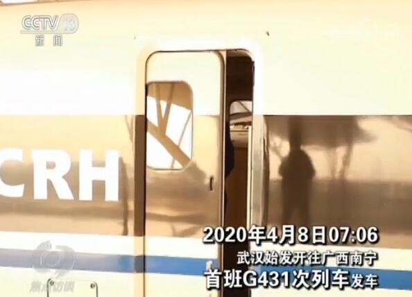 4月8日早上7時06分,由湖北武漢始發(fā)開往廣西南寧的首班G431次列車離鄂高鐵從武漢站發(fā)車。