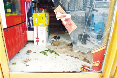 根據(jù)民警現(xiàn)場偵查,玻璃門上的大窟窿,是高近一米、寬半米多的不規(guī)則大洞。卷閘門也被人破壞,玻璃門口還有一盆破碎的花盆。超市收銀臺(tái)前被翻得亂七八糟,幾千元錢被偷,還有一些香煙被盜。“被盜的香煙都是好煙,中華、玉溪、芙蓉王、黃鶴樓等。”民警介紹說。