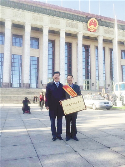 李新寬(右)在人民大會(huì)堂前合影留念。(李新寬供圖)