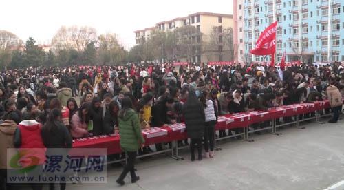 12月16號(hào),由市打傳辦、市文明辦、市綜治辦、市工商局等單位聯(lián)合組織的河南省高校“抵制傳銷 凈化校園 共創(chuàng)和諧”大學(xué)生萬(wàn)人簽名活動(dòng)在漯河醫(yī)專舉行,來(lái)自我市各高校的大學(xué)生參加了活動(dòng)。