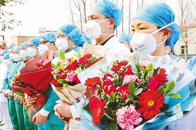蒿慧杰深情地說,到了隔離病區(qū),也就意味著與病魔成了近鄰。希望第二批進入隔離病區(qū)的醫(yī)務工作者加強自身防護、注意勞逸結合,確保自身安全,我們等著你們勝利的消息,全市人民也期盼著你們不斷有捷報傳出來。