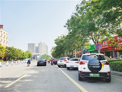市區(qū)太行山路禁停標(biāo)志旁停滿車