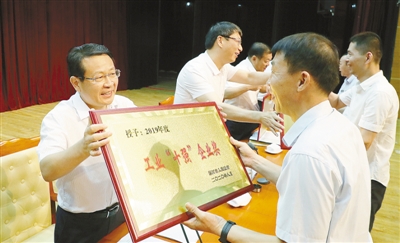 9月2日,市委書記蒿慧杰向工業(yè)“十強(qiáng)”企業(yè)代表頒獎。記者 王慶建 張 佩 攝