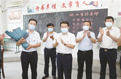 他強調(diào),教師承載著教書育人的神圣職責使命,職業(yè)崇高、受人尊敬,責任重大、使命光榮,希望廣大教師忠誠履職盡責,認真完成黨和人民群眾賦予的職責使命,為我市教育事業(yè)做出新的更大貢獻。各級、各部門要持續(xù)把教育放在優(yōu)先發(fā)展的戰(zhàn)略地位,更加關注教育、支持教育、關心教師,營造有利于教師成長、教育發(fā)展的良好風尚,讓尊師重教在沙澧大地蔚然成風,讓教師更受尊重、更有幸福感、更有榮譽感,共同推動教育事業(yè)高質(zhì)量發(fā)展。全市各級、各部門特別是教育部門,一方面要慎終如始抓好秋冬季疫情防控,堅持人民至上、生命至上,備足備齊疫情防控物資,把常態(tài)化疫情防控措施落實落細,進一步提高應急處置能力,確保發(fā)現(xiàn)問題能夠立即處置解決,切實保障廣大師生身體健康和生命安全。另一方面,要扎實推動教育事業(yè)高質(zhì)量發(fā)展。要深入貫徹習近平總書記關于教育工作的重要講話和指示批示精神,把黨的教育方針和立德樹人根本任務貫穿到教育教學工作的各領域、各環(huán)節(jié)、各方面,進一步加強廣大師生的思想政治教育,以黨的建設高質(zhì)量推動教育事業(yè)高質(zhì)量發(fā)展,培養(yǎng)更多具有共產(chǎn)主義遠大理想和中國特色社會主義共同理想、愛黨愛國愛社會主義、德智體美勞全面發(fā)展的社會主義建設者和接班人。