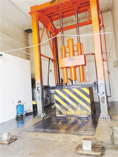 在黃崗村垃圾中轉(zhuǎn)站,一臺壓縮機(jī)正在作業(yè)。記者發(fā)現(xiàn),每來一輛垃圾運(yùn)輸車,就會有專人及時處理。只見環(huán)衛(wèi)工人一邊用清水清洗著地面,一邊用鏟子將遺留在地面的垃圾清理干凈,始終保持中轉(zhuǎn)站內(nèi)部整潔。