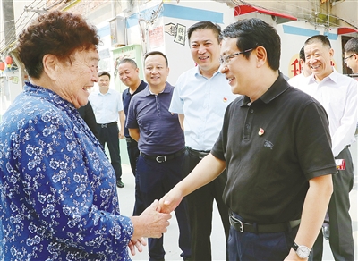 9月27日,市委書(shū)記蒿慧杰在源匯區(qū)團(tuán)結(jié)路迎港巷調(diào)研并與居民親切交流。記者 王慶建 攝