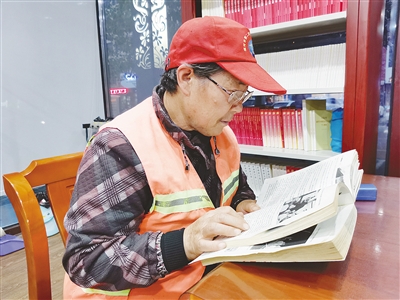 環(huán)衛(wèi)工陳桂花 晚上下班后 捧書看一會兒