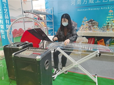 展位負責人婁旭告訴記者,他們是一家生產(chǎn)亞克力制品的企業(yè)。“大部分展位都提供美食,我們這里只有各種亞克力制成的支架、托盤,用于陳列食品。為了提高吸引力,我才想出這個辦法。”婁旭說,“彈古箏的人是我們專門雇來的。古箏是亞克力做的,通體透明,很漂亮,所以更能吸睛。”婁旭所在企業(yè)生產(chǎn)的大部分產(chǎn)品原本用于出口,受疫情影響,今年銷量有所下滑,此次參加食博會,正是為了擴大國內(nèi)市場。“亞克力說簡單點就是高級塑料,用它陳列食品可以提升食品的質(zhì)感。”婁旭說,“我們是第一次參加食博會,希望能擴展更多銷售渠道。”(記者:楊旭)