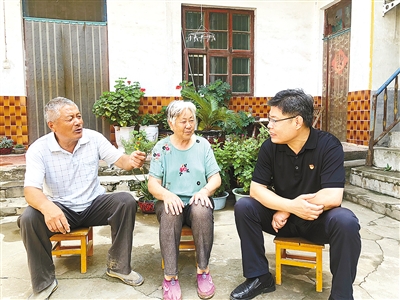 郭紅福與薛道民、李翠花老兩口嘮家常。(資料圖片)見(jiàn)習(xí)記者 黨夢(mèng)琦