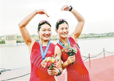 呂揚(yáng)(右)與隊(duì)友張靈拿下2020年全國賽艇錦標(biāo)賽首金。