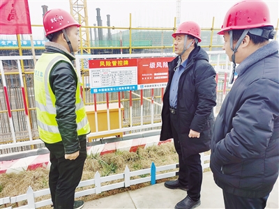 劉智民(中)在雙匯總部建設(shè)工地檢查各項(xiàng)安全措施落實(shí)情況。