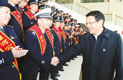 蒿慧杰指出,設(shè)立“中國人民警察節(jié)”,充分體現(xiàn)了習近平總書記和黨中央、國務(wù)院對人民警察隊伍的關(guān)心關(guān)懷。舉行慶祝首屆中國人民警察節(jié)暨2020漯河公安職業(yè)榮譽儀式,是貫徹落實黨中央、國務(wù)院決策部署的實際行動,也是市委、市政府對全市人民警察隊伍的充分肯定和高度褒獎。 近年來,全市公安機關(guān)在市委、市政府的堅強領(lǐng)導下,堅持以習近平新時代中國特色社會主義思想為指導,圍繞中心、服務(wù)大局,忠實履行維穩(wěn)第一責任,主動服務(wù)發(fā)展第一要務(wù),始終走在防風險、保安全、護穩(wěn)定、促發(fā)展的最前沿,在安保維穩(wěn)、掃黑除惡、疫情防控、脫貧攻堅、環(huán)保攻堅、創(chuàng)文攻堅等重大工作中,展現(xiàn)了公安風采、貢獻了公安力量,也涌現(xiàn)出一大批先進集體和先進個人,充分體現(xiàn)了警察隊伍的政治品格、公仆情懷、擔當精神。我代表市委、市政府向受表彰的先進模范表示熱烈的祝賀,向全市廣大公安民警及其家屬致以節(jié)日的問候和崇高的敬意。當前,我市已進入全面推進社會主義現(xiàn)代化建設(shè)的新階段,希望全市公安機關(guān)和廣大公安民警以“中國人民警察節(jié)”的設(shè)立為新起點,深入學習貫徹習近平總書記關(guān)于做好公安工作的重要講話、訓詞和指示批示精神,牢記“對黨忠誠、服務(wù)人民、執(zhí)法公正、紀律嚴明”的新時代公安工作總要求,大力弘揚英模精神、繼承優(yōu)良傳統(tǒng),以高度的政治責任感、良好的精神狀態(tài)、扎實的工作作風,全力以赴做好維護國家安全和社會穩(wěn)定各項工作,為落實新時代漯河經(jīng)濟社會發(fā)展“五個一”總體思路營造良好的社會環(huán)境,以優(yōu)異成績迎接中國共產(chǎn)黨成立100周年。各級黨委、政府要進一步關(guān)心和支持公安工作,加大綜合保障力度,落實從優(yōu)待警舉措,讓廣大公安民警工作安心、生活舒心。