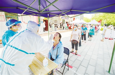 8月7日至8月8日,我市用兩天時間對中心城區(qū)進行全員核酸檢測。冒著高溫,醫(yī)護人員全副武裝,社區(qū)工作者、志愿者在現(xiàn)場維持秩序,確保核酸檢測采樣順利進行。在這場沒有硝煙的戰(zhàn)斗中,醫(yī)護人員、社區(qū)工作者、志愿者們共同譜寫了一曲戰(zhàn)“疫”之歌。