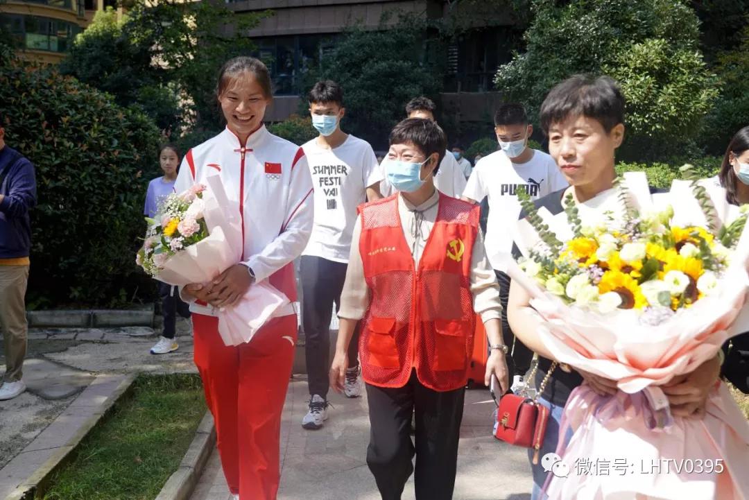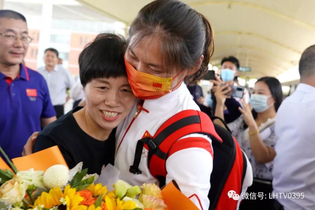 在看到奧運冠軍呂揚的瞬間,人群中立刻爆發(fā)出熱烈的掌聲,呂揚父母緊緊擁抱著女兒,每天日夜牽掛的家人,終于團聚了。大家為她獻上鮮花,和她擁抱,祝福聲不絕于耳。