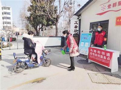 1月13日上午,記者在工務(wù)段二號院門口看到4名身著紅馬甲的值勤人員頂著寒風(fēng)為進(jìn)入小區(qū)的居民測溫、消毒。他們都是該小區(qū)居民,年齡均在60歲以上。接到疫情防控的通知后,他們主動參與小區(qū)值勤。
