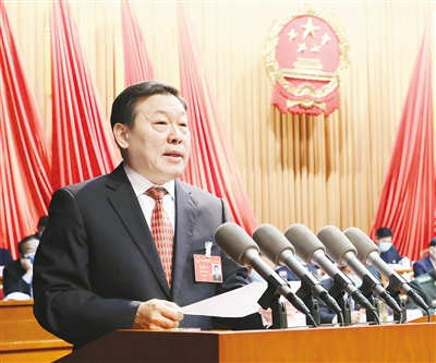 2月23日,市人大常委會(huì)主任李思杰在市七屆人大八次會(huì)議上作市人大常委會(huì)工作報(bào)告。 記者 張 佩 攝