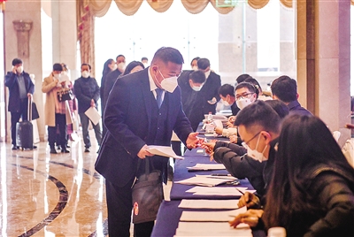 當(dāng)天上午,記者在報(bào)到處看到,各項(xiàng)工作有序開展,現(xiàn)場氣氛熱烈、秩序井然。前來報(bào)到的委員在工作人員引領(lǐng)下,有條不紊地辦理報(bào)到手續(xù)、領(lǐng)取證件和會(huì)議材料。